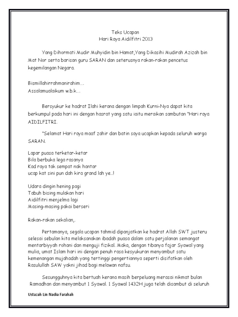 Ucapan Perhimpunan Hari Raya Written By Samara_Lawrence Friday, March 25, 2022 Add Comment Edit Teks Ucapan Perhimpunan Teks Ucapan Perhimpunan Message From The Chairman Of Petronas Hari Raya Aidilfitri 2015 Teks Ucapan Hari Raya Pdf Share this post